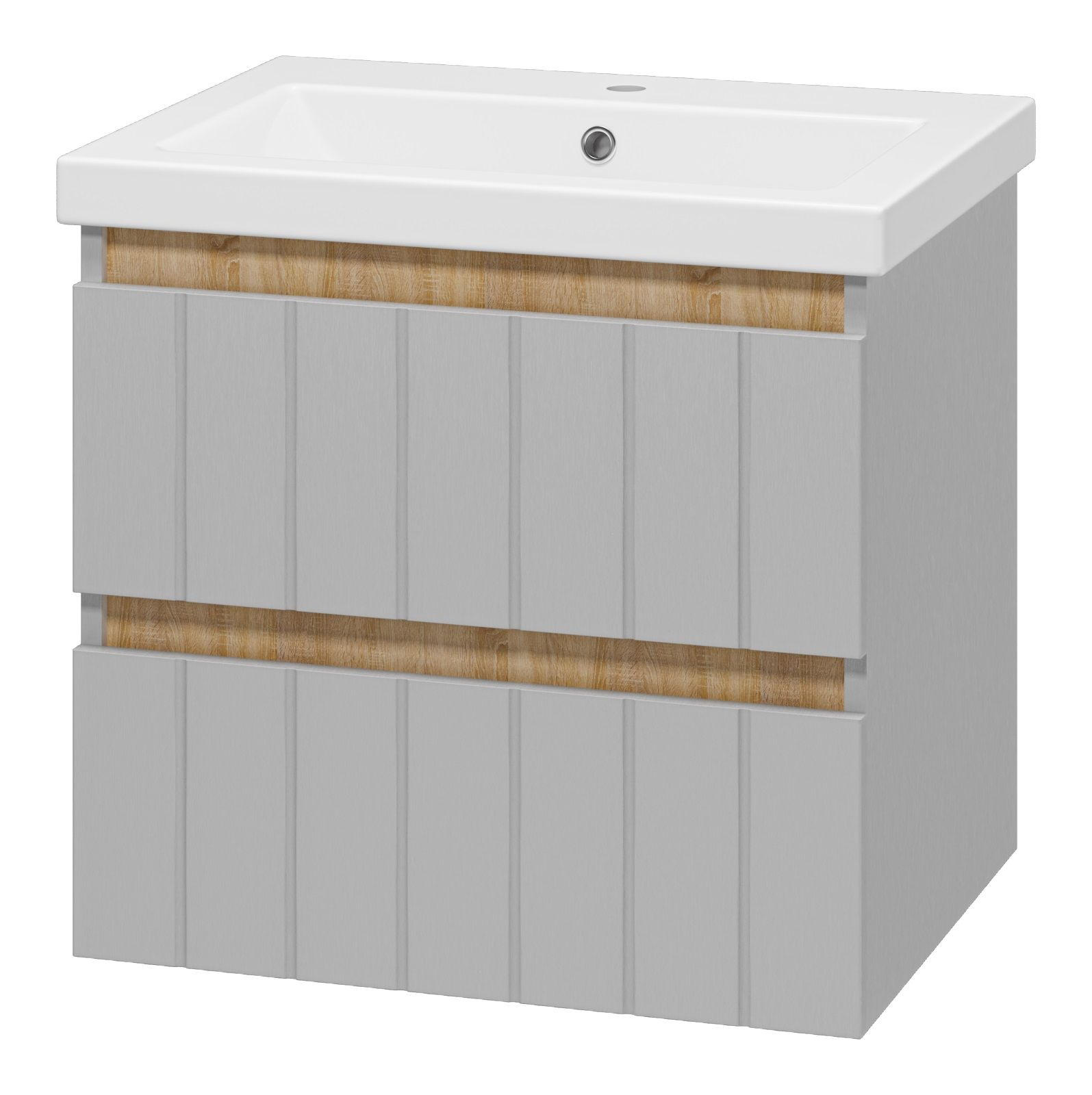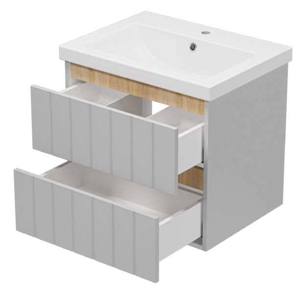 Подвесная тумба под раковину Misty Грэй 60см серый металлик/дуб Сонома