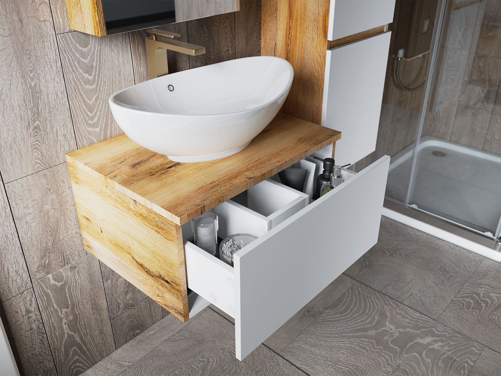Подвесная тумба под раковину Misty Ива 80см белый/дуб Вотан