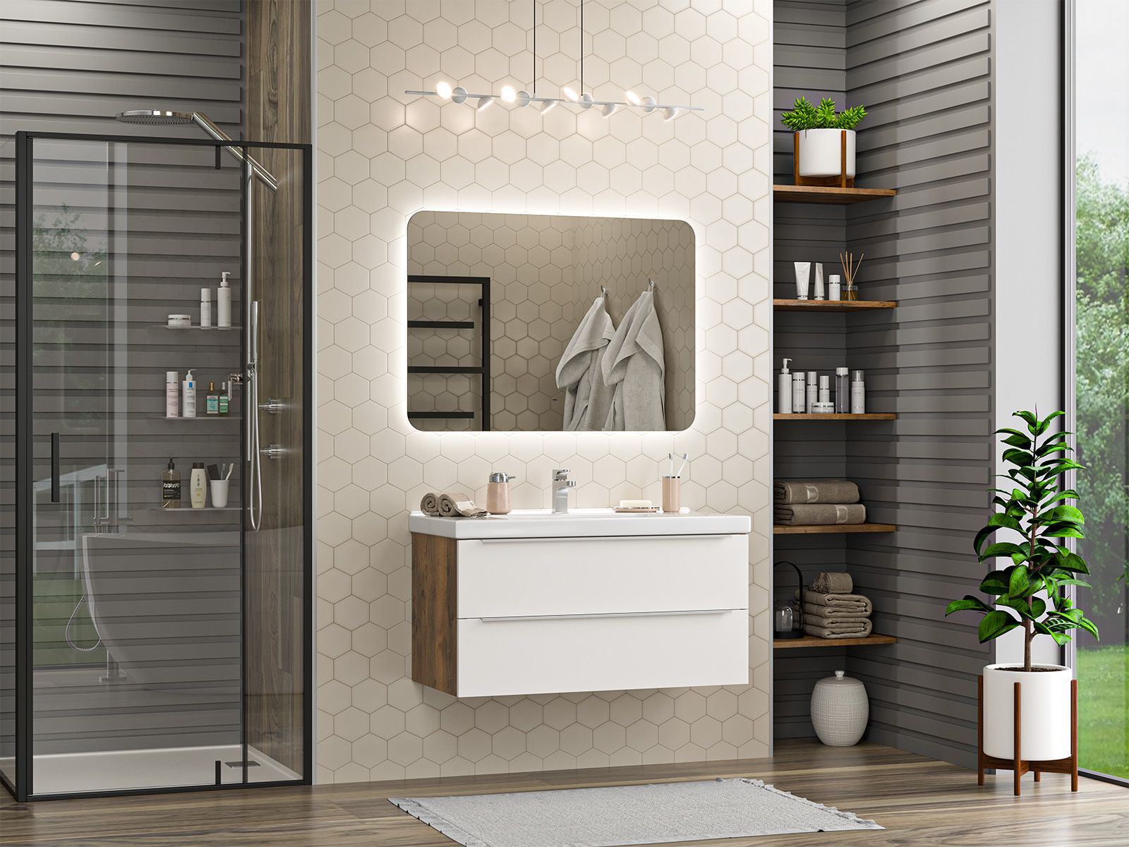 Подвесная тумба под раковину Misty Карат 100см белый/дуб Галифакс олово