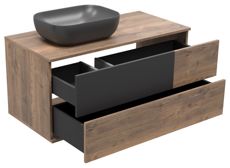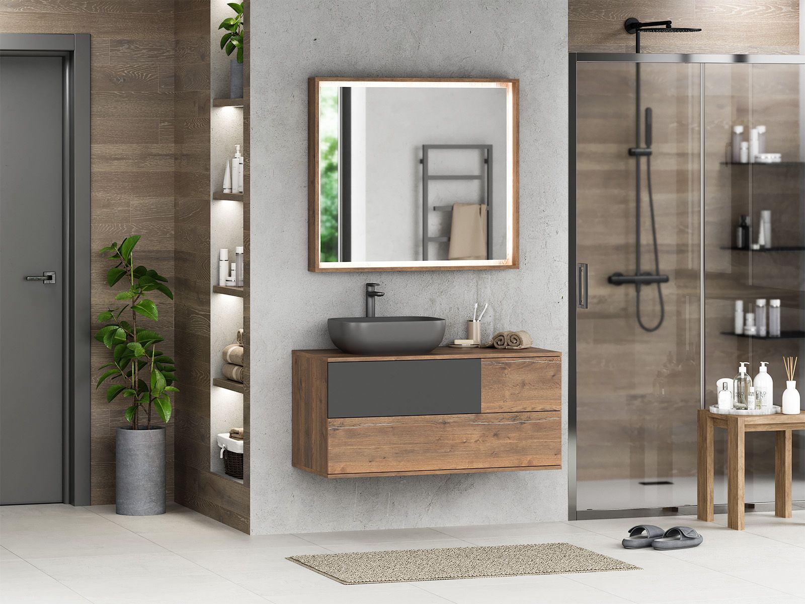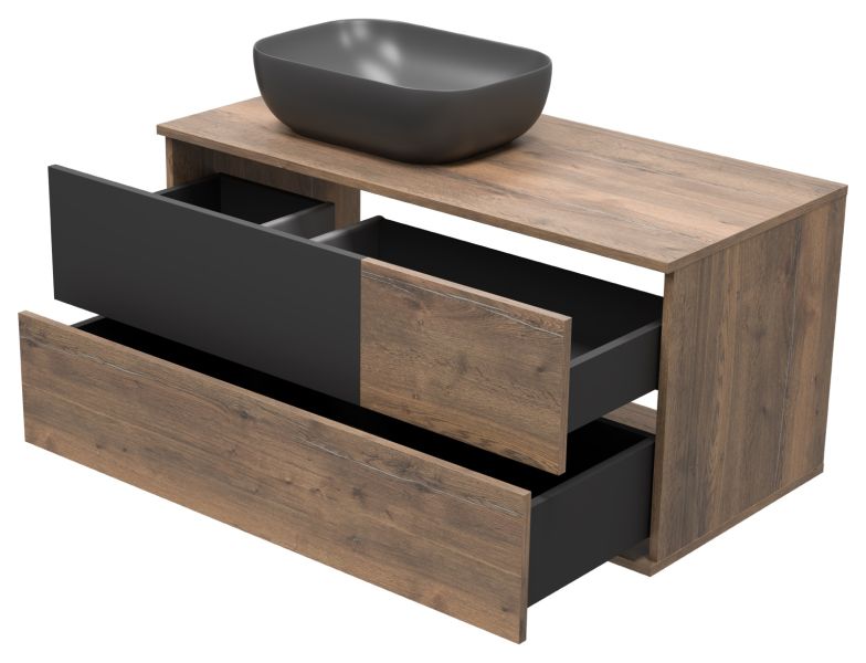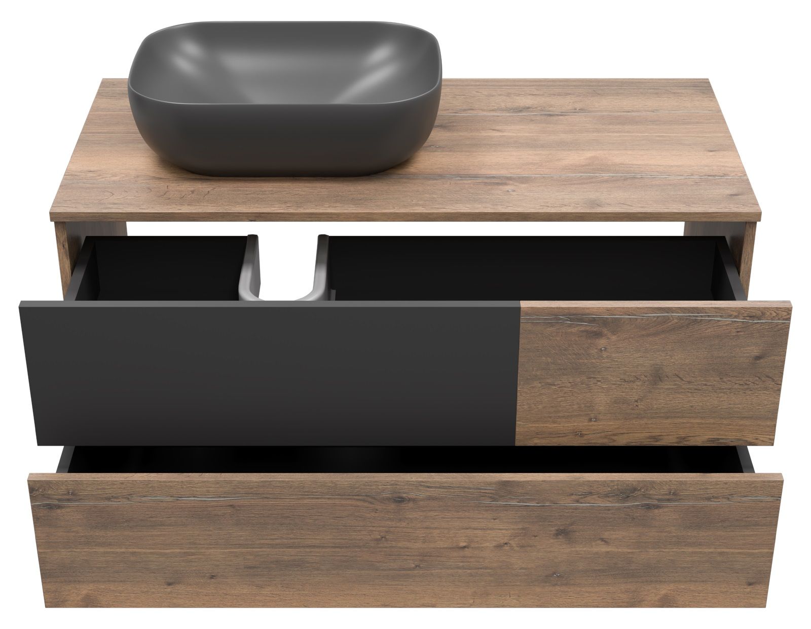 Подвесная тумба под раковину Misty Коломбо 100см левая дуб Галифакс/антрацит