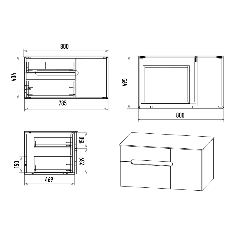 Подвесная тумба под раковину Misty Роял 80см чёрный