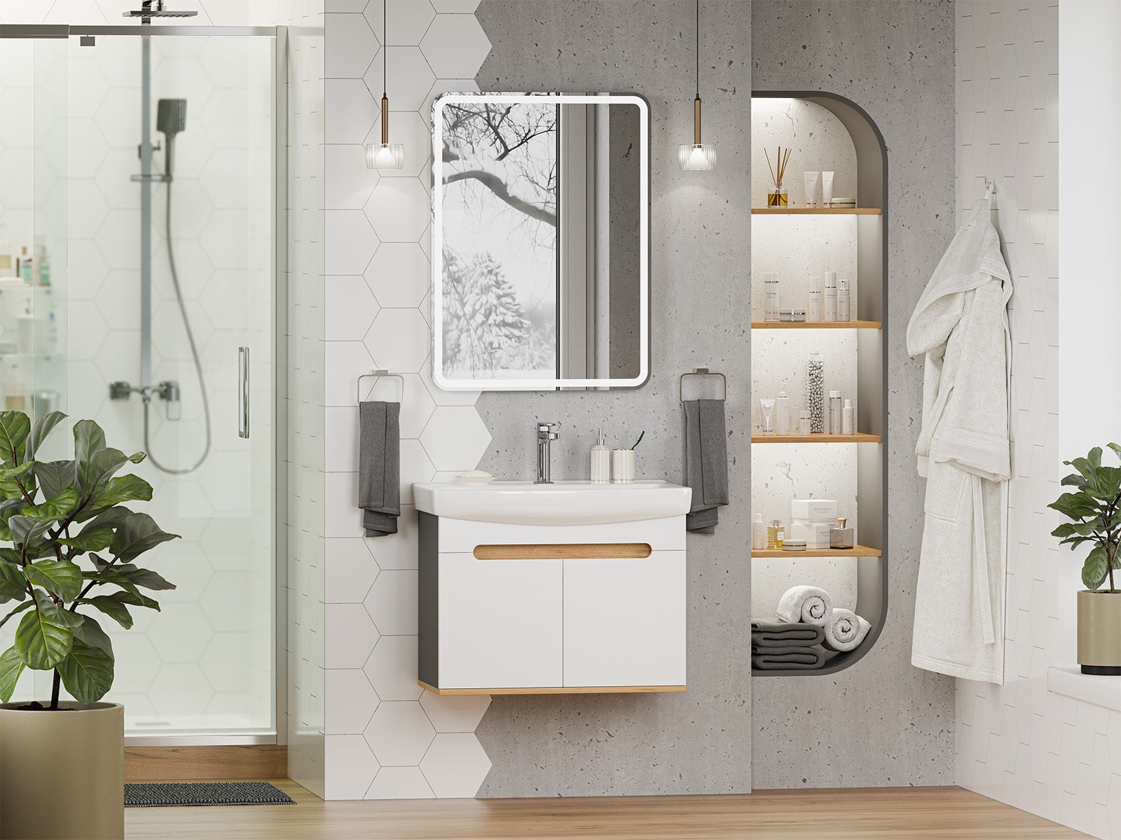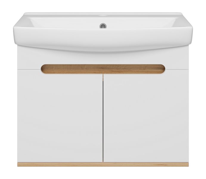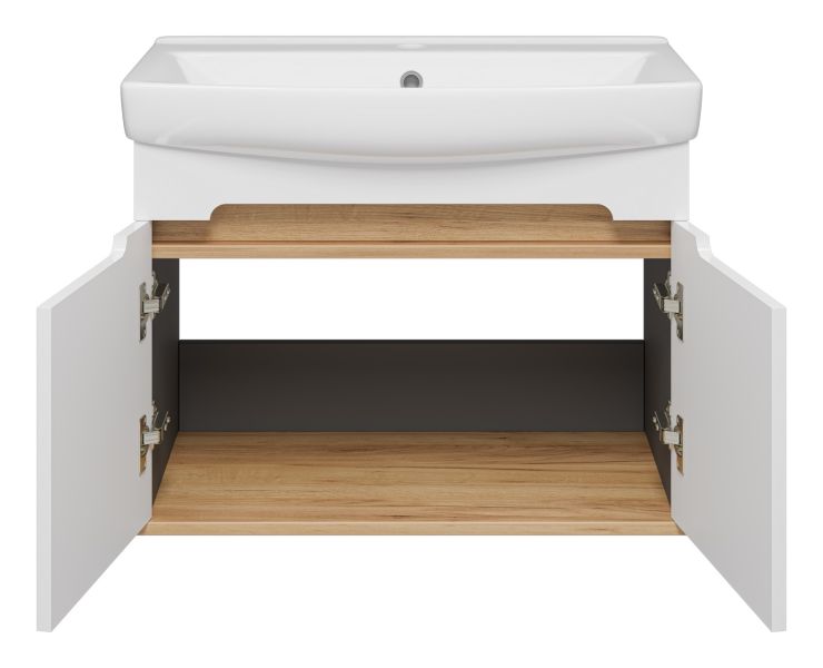 Подвесная тумба под раковину Misty Сканди 70см белый/дуб крафт золотой/антрацит