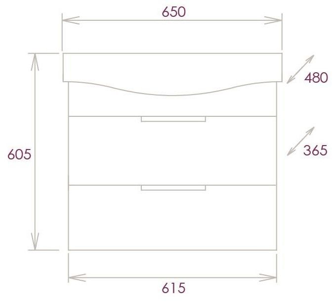 Размеры тумбы без учета раковины: 61х36х50см.