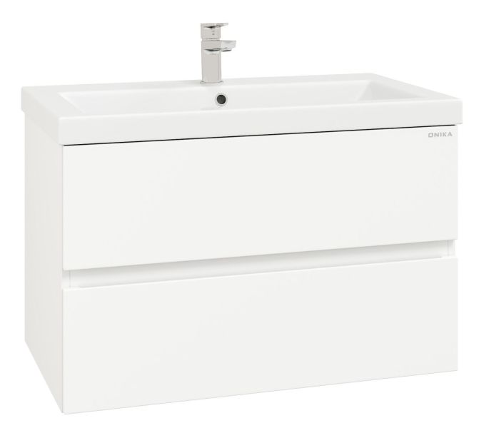 Подвесная тумба для ванной комнаты Onika Эвада 80 сочетает в себе стильный минималистичный дизайн, белую глянцевую поверхность и высочайшее качество исполнения.