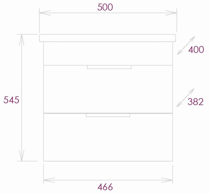 Размеры тумбы без учета раковины 47х38х50 см.