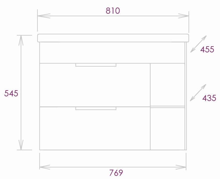 Размеры тумбы без учета раковины 77х43х50 см.