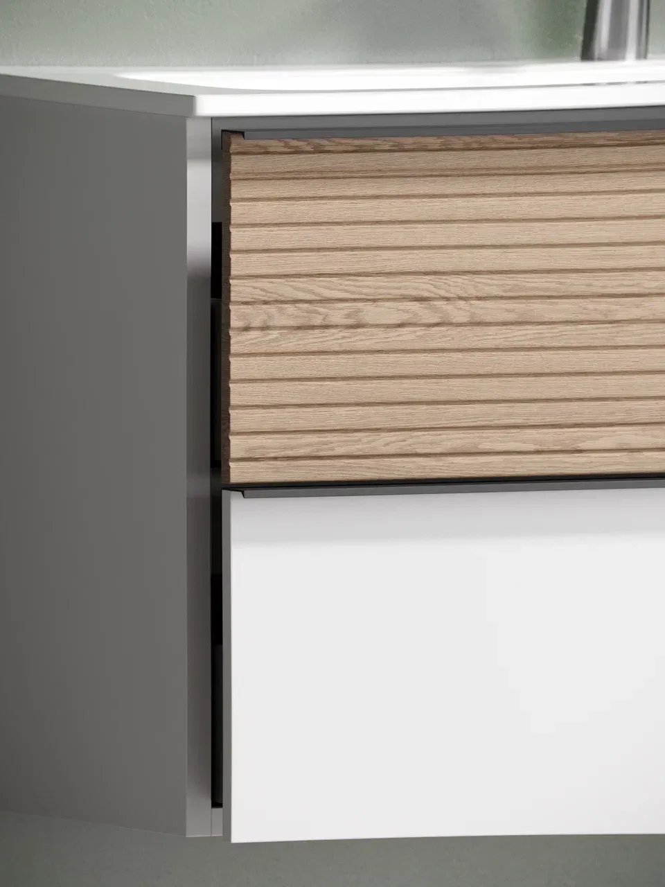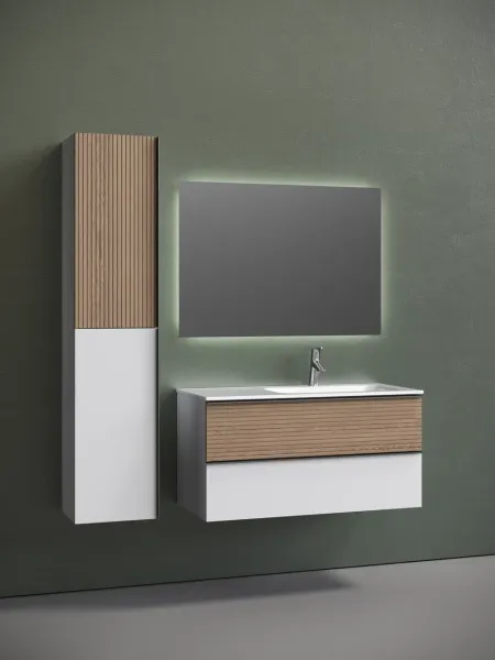 Подвесная тумба под раковину Sancos Delta DL100RW правая 100см дуб светлый/белый