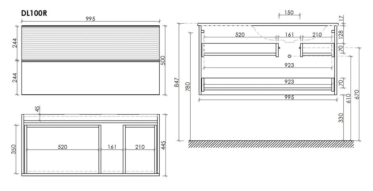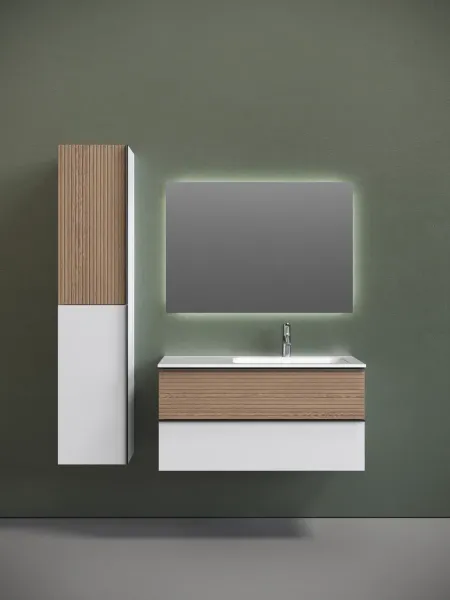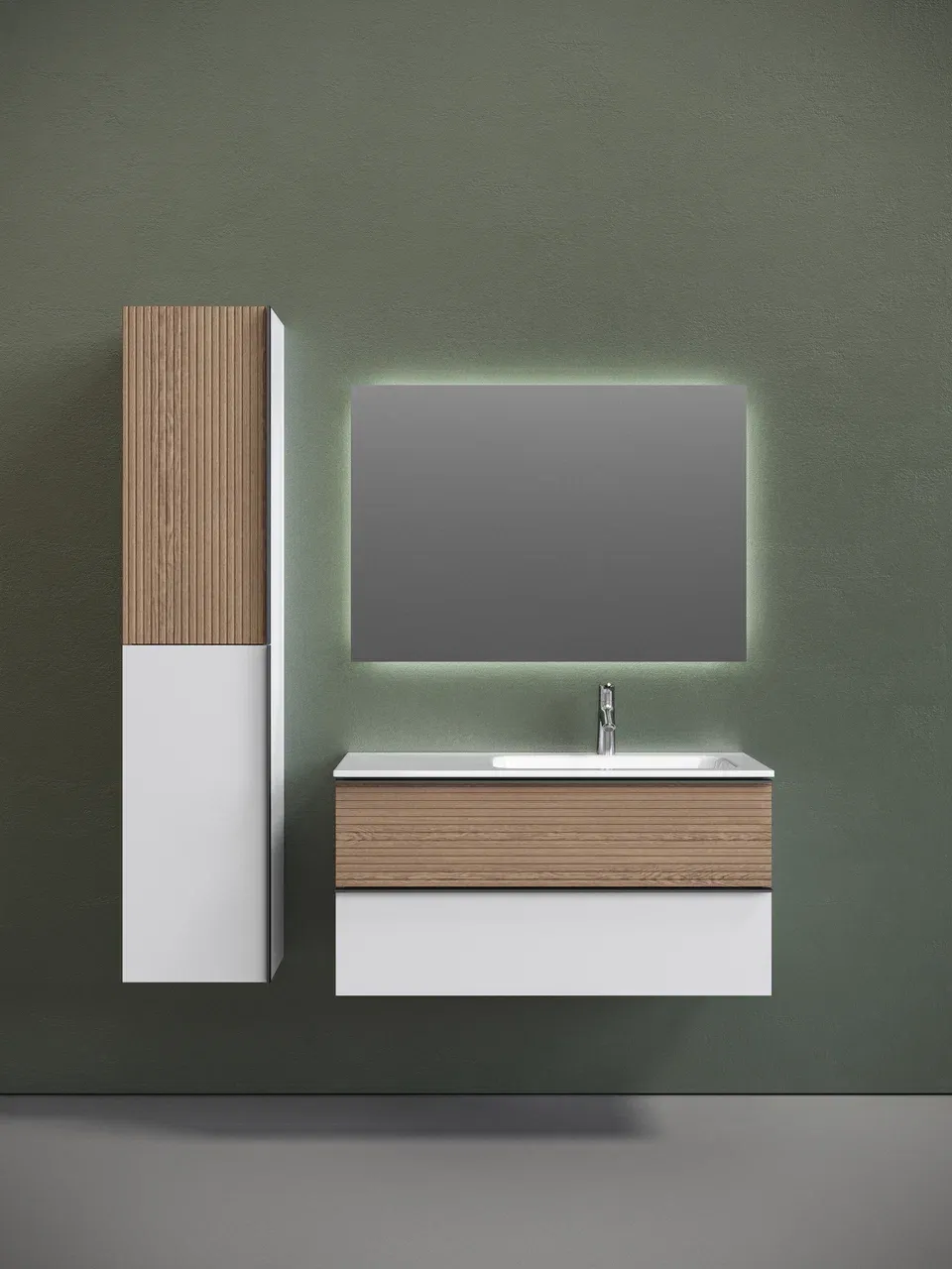 Подвесная тумба под раковину Sancos Delta DL100RW правая 100см дуб светлый/белый купить