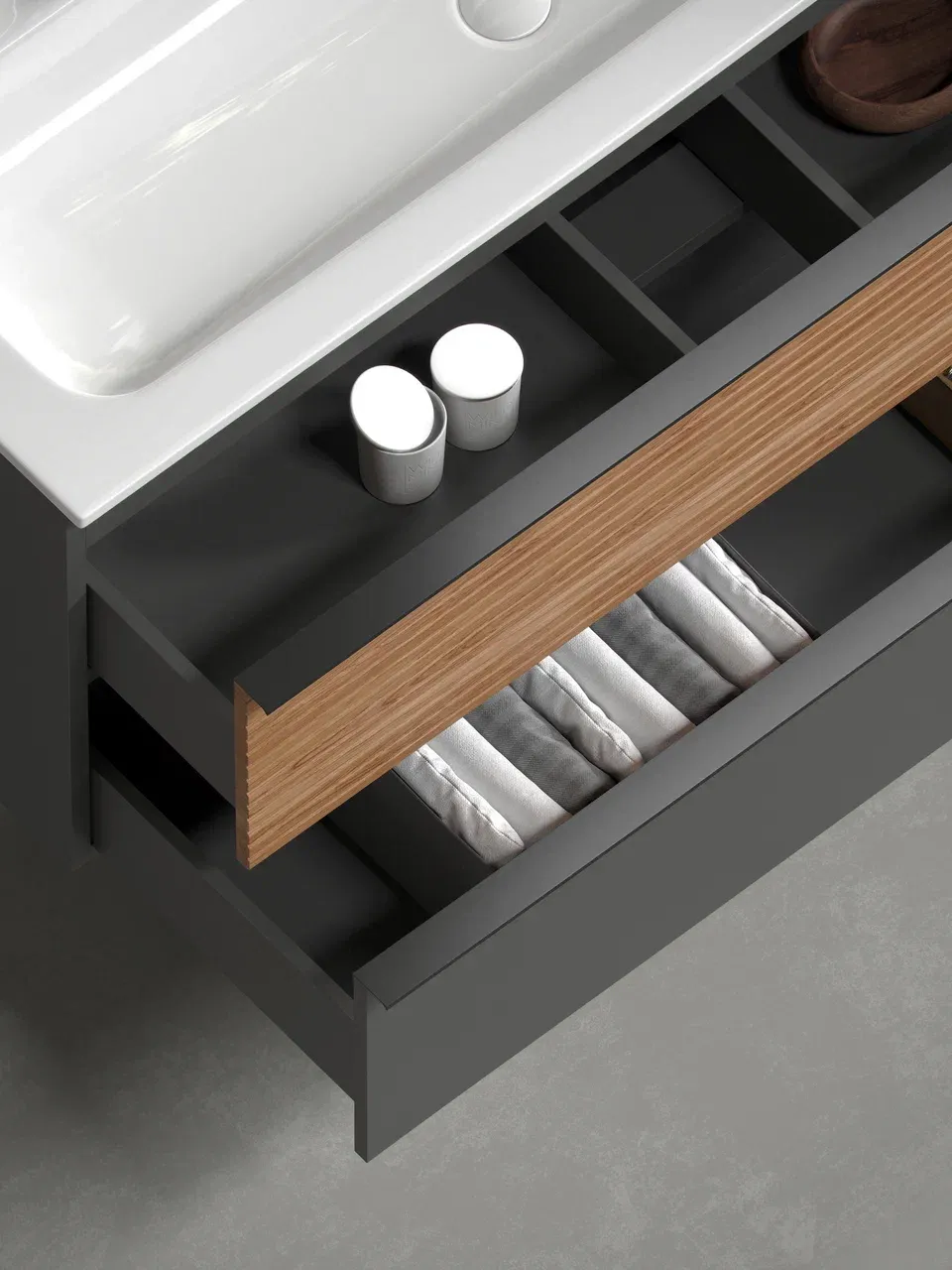 Подвесная тумба под раковину Sancos Delta DL80GR 80см дуб красный/графит купить
