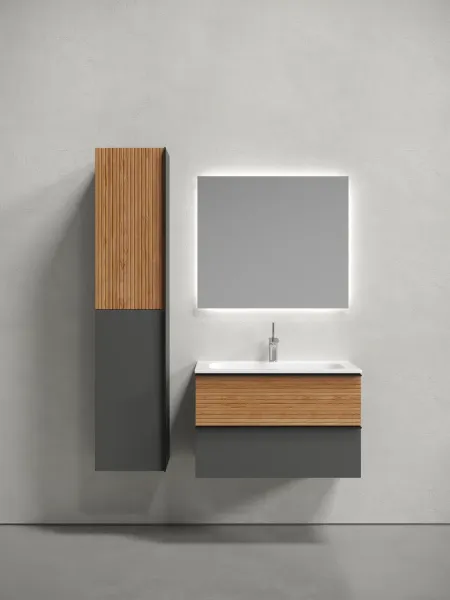 Подвесная тумба под раковину Sancos Delta DL80GR 80см дуб красный/графит