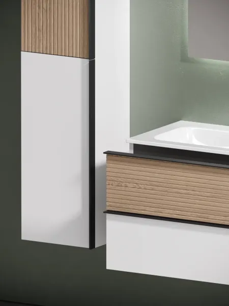 Подвесная тумба под раковину Sancos Delta DL80W 80см дуб светлый/белый
