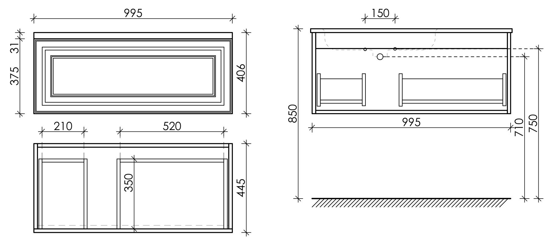 Подвесная тумба под раковину Sancos Very VR100LSM левая 100см Doha Soft купить