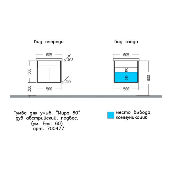 Тумба Мира 60 изготовлена под фаянсовый умывальник Sanita Fest 60.