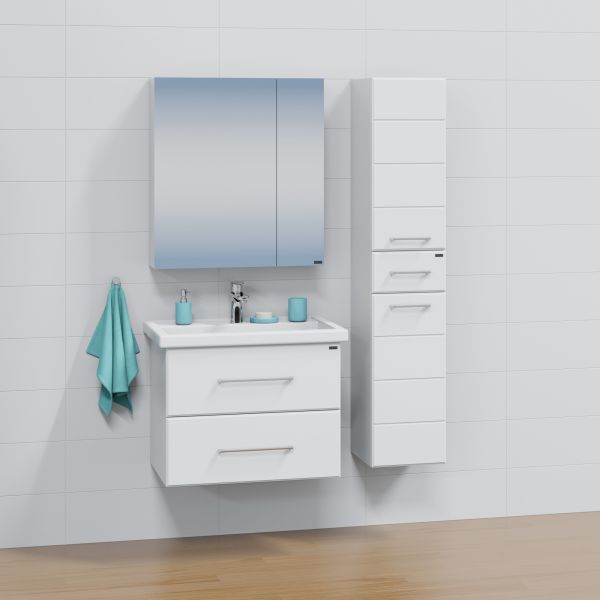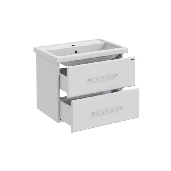 Тумба подвесная Омега 70 для умывальника Фостер 70. Корпус изделия выполнен из влагостойкого ЛДСП, фасад из МДФ и покрыт пленкой. Выдвижные ящики тумбы оснащены шариковыми направляющими полного выдвижения.