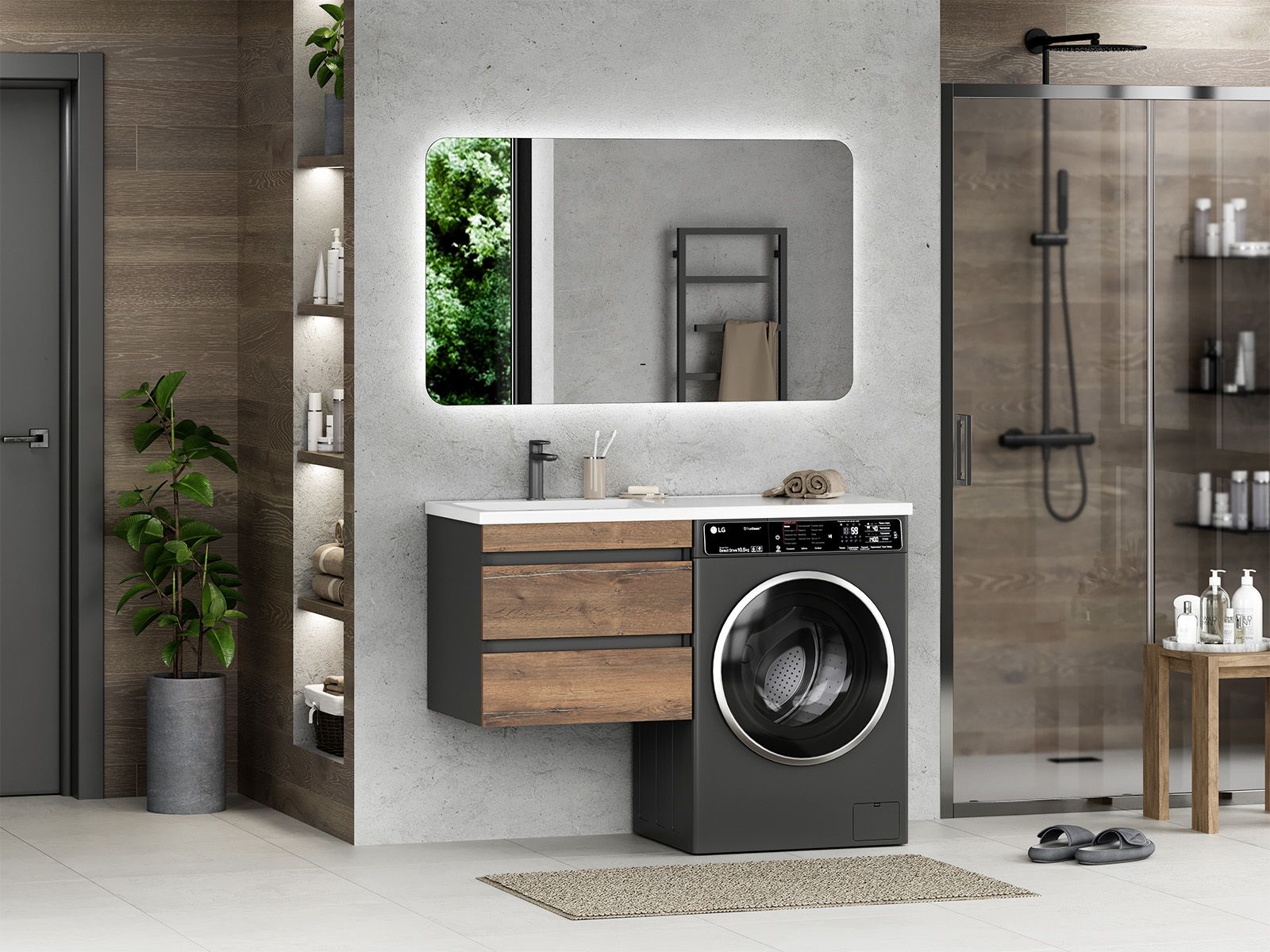 Подвесная тумба раковину Misty Коломбо под стиральную машину 60см дуб Галифакс/антрацит