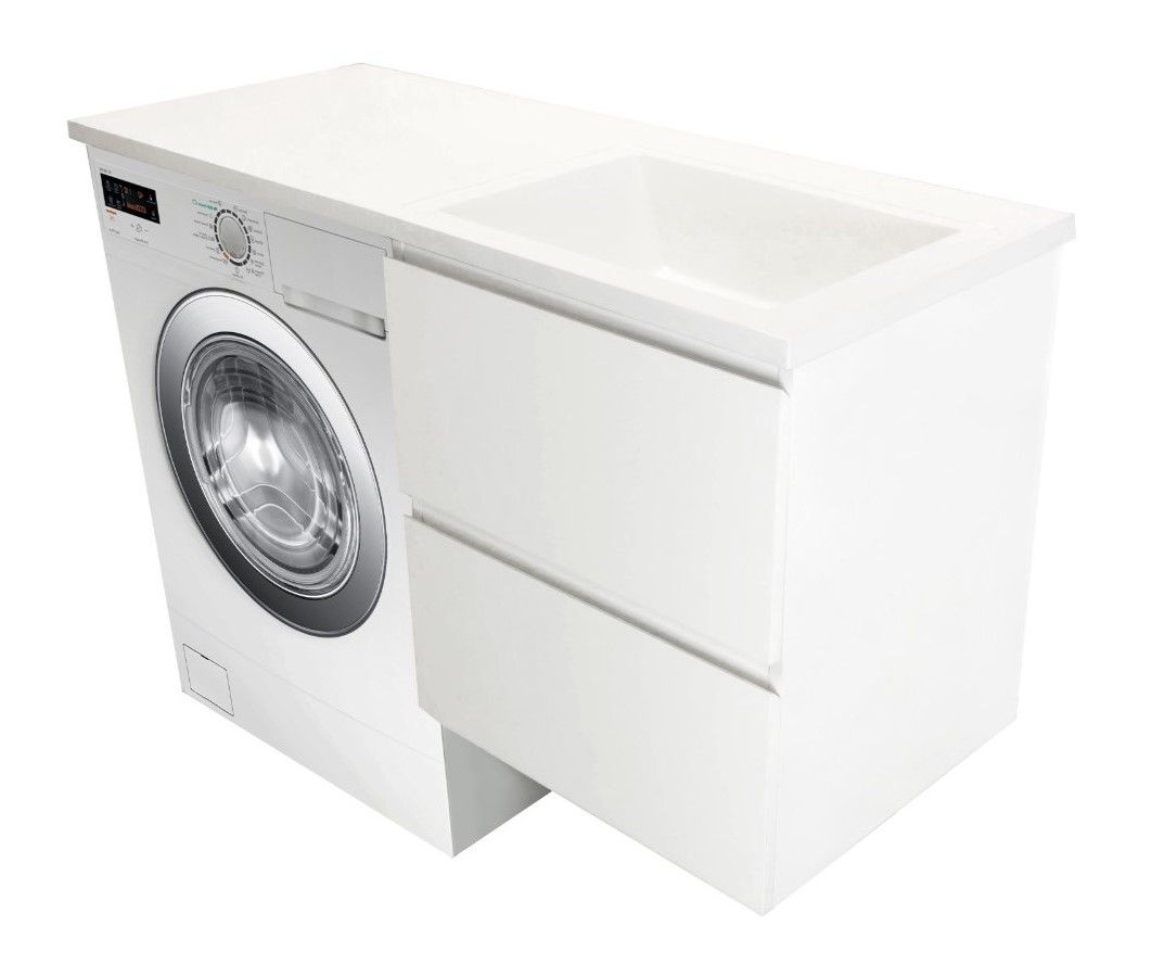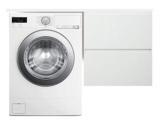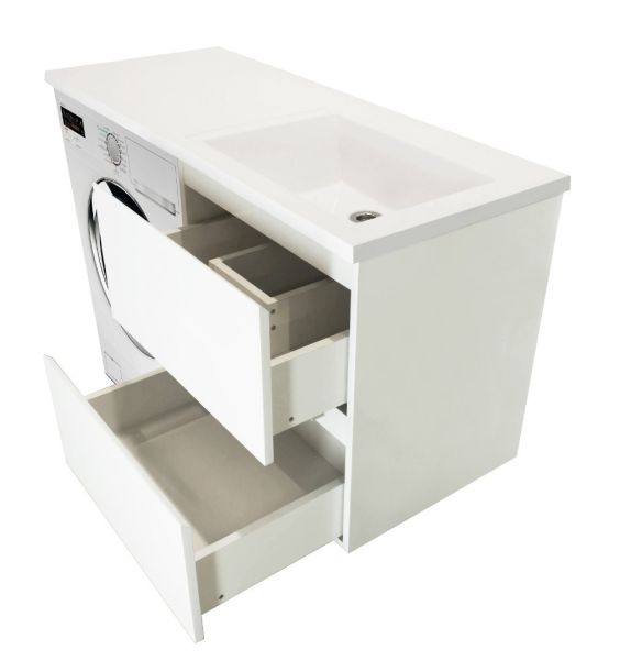 Коллекция мебели для ванной комнаты Dallas Luxe покоряет своей удивительной простой и функциональностью. Современная тумба укомплектована раковиной из литьевого мрамора с удобной чашей. Стиральная машина устанавливается под столешницей, за счет чего экономит место в ванной комнате. В тумбе имеются два ящика. Нижний ящик тумбы – широкий и вместительный – предназначен для крупных предметов, а в верхнем имеется специальная организация пространства, позволяющая хранить мелкие вещи. Подвесная система монтажа позволяет более эффективно использовать пространство, не мешает уборке в ванной комнате.