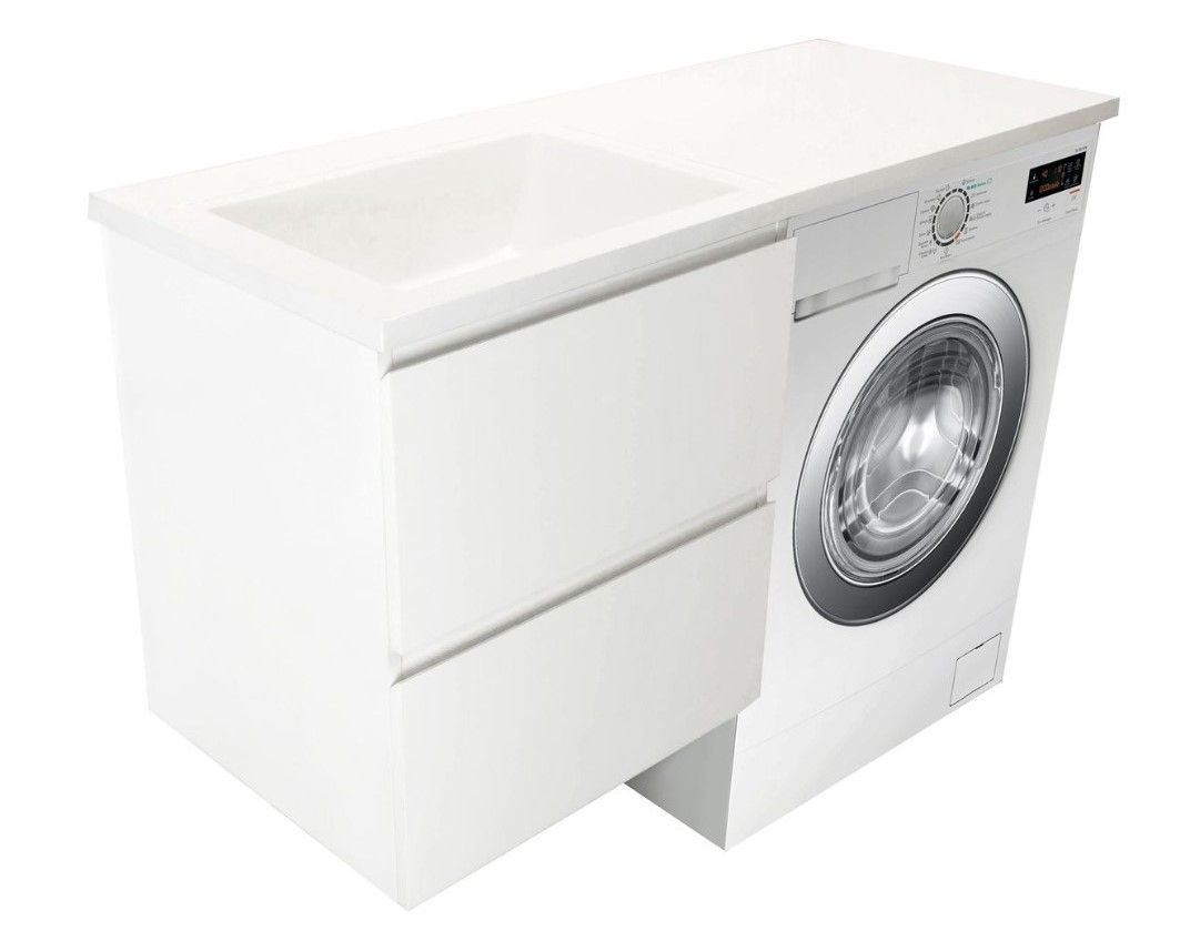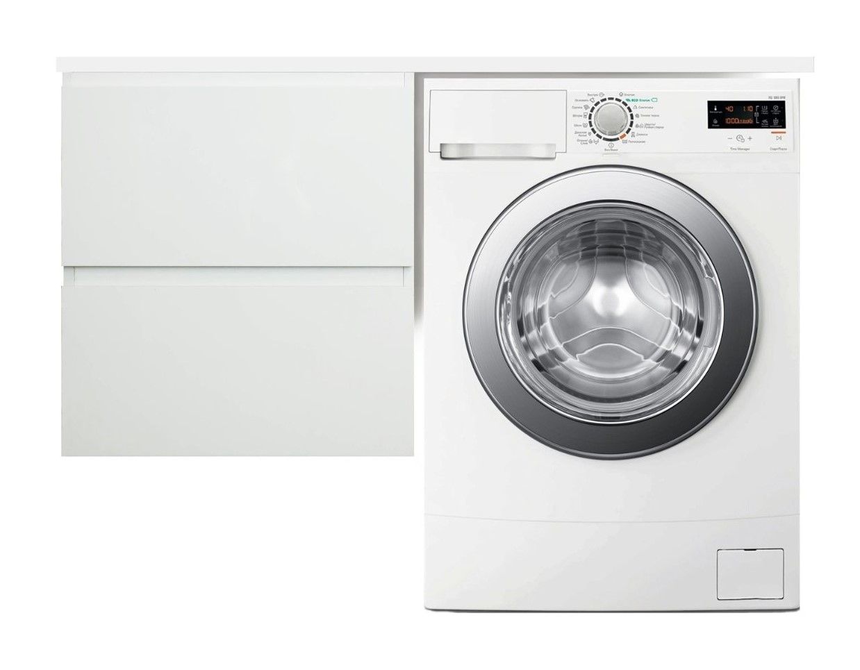 Коллекция мебели для ванной комнаты Dallas Luxe покоряет своей удивительной простой и функциональностью. Стильная лаконичная тумба, укомплектована раковиной из литьевого мрамора с удобной чашей. Стиральная машина устанавливается под столешницей, за счет чего экономит место в ванной комнате. В тумбе имеются два ящика. Нижн