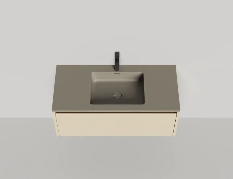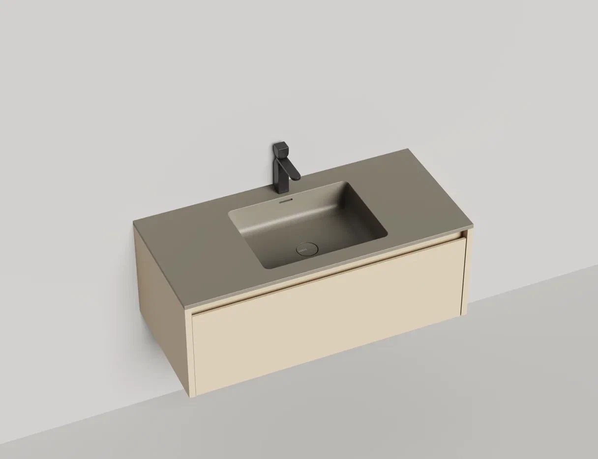 • Тумба и столешница из материала S-Stone в сборе (накладные раковины укомплектованы донным клапаном и поставляются в отдельной коробке)