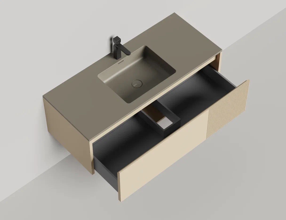 Наполнение для тумбы включает: блоки ячеек для тумб, коврики и комплект внутренней подсветки, которые помогут организовать пространство и создать более удобный доступ к вещам.Тумба DOMINO, дополненная столешницей COSTA из каменного литья S-Stone, гарантирует практичность и простоту ухода.