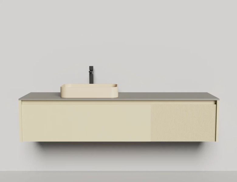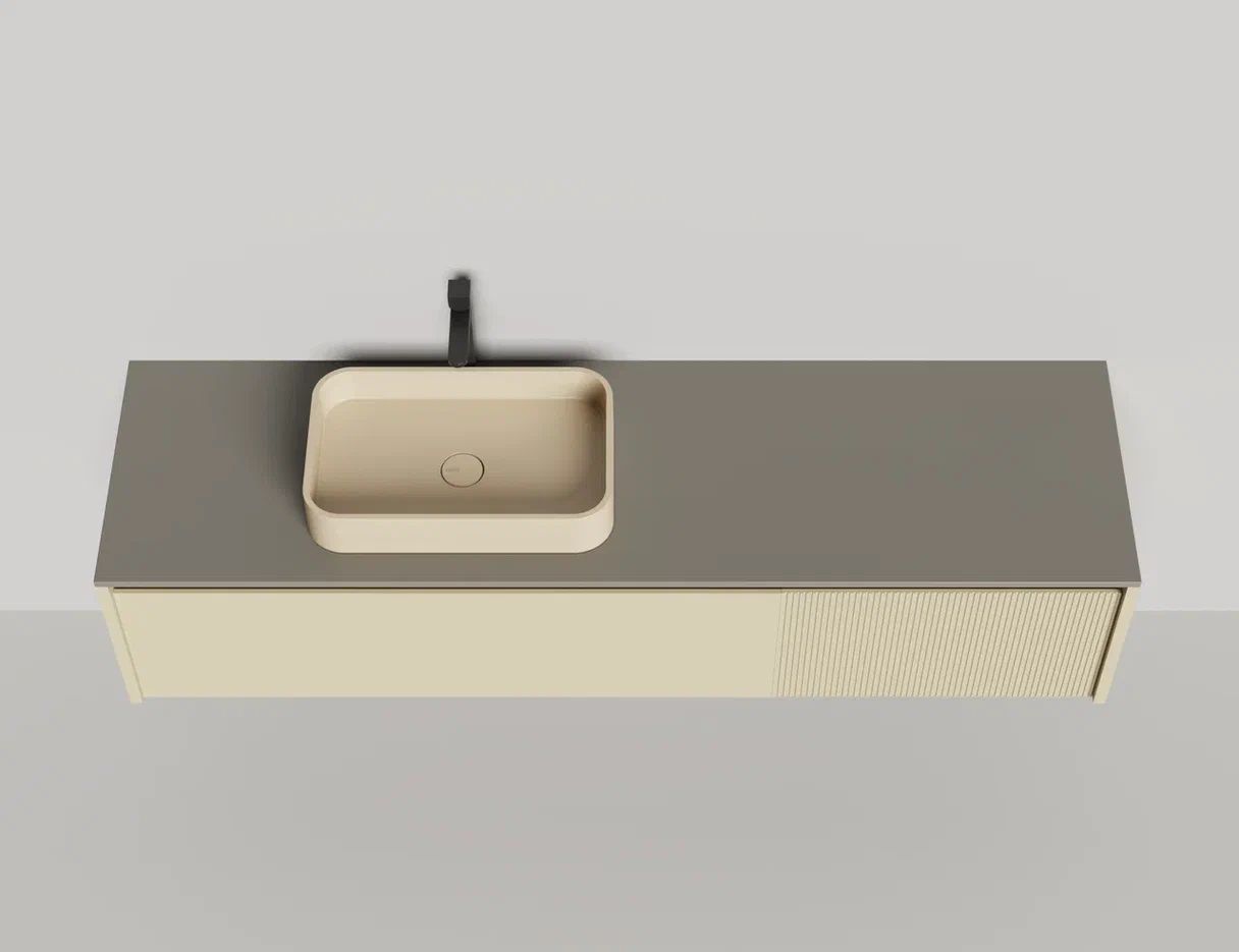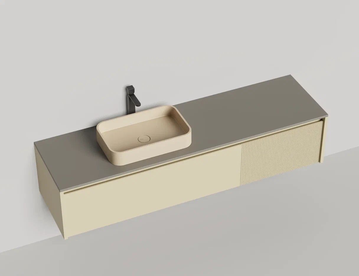 - Тумба и столешница из материала S-Stone в сборе (накладные раковины укомплектованы донным клапаном и поставляются в отдельной коробке)