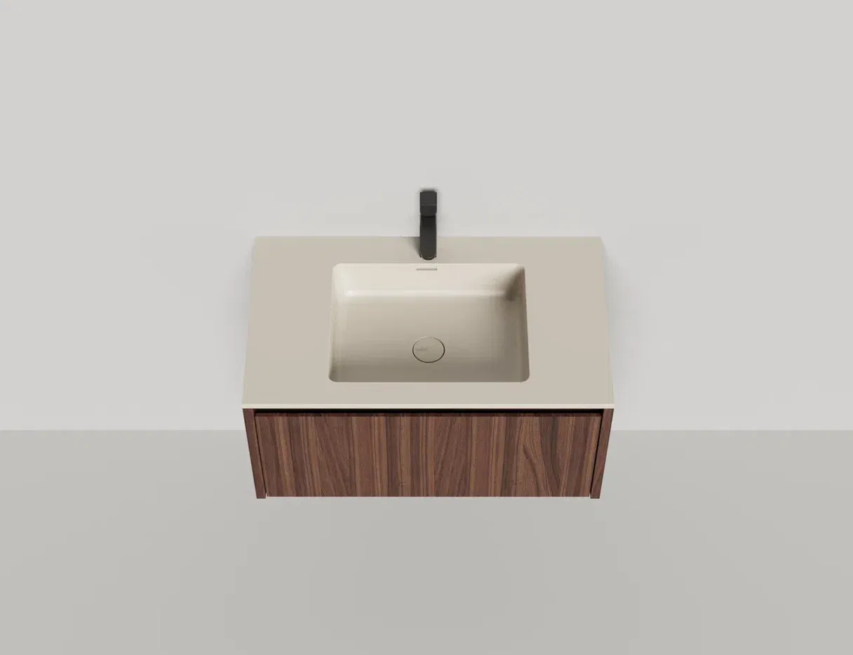 - Тумба и столешница из материала S-Stone в сборе (накладные раковины укомплектованы донным клапаном и поставляются в отдельной коробке)