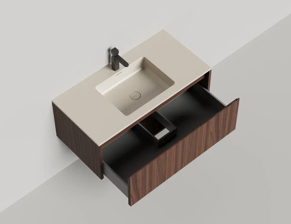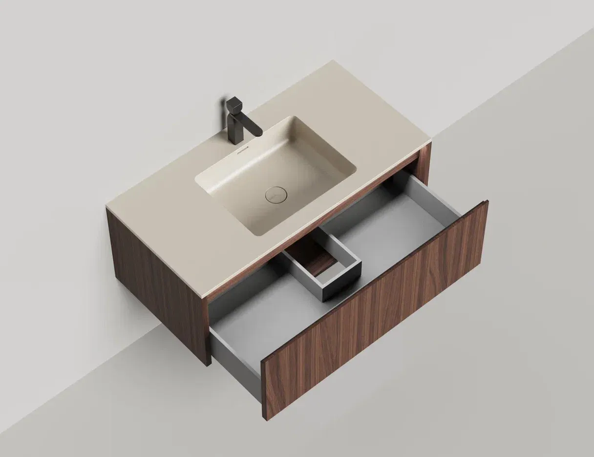 Наполнение для тумбы включает: блоки ячеек для тумб, коврики и комплект внутренней подсветки, которые помогут организовать пространство и создать более удобный доступ к вещам.Тумба DOMINO, дополненная столешницей COSTA из каменного литья S-Stone, гарантирует практичность и простоту ухода.