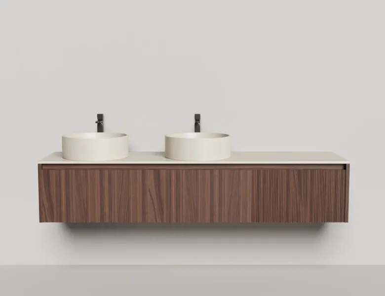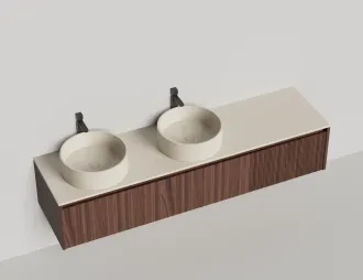 • Тумба и столешница из материала S-Stone в сборе (накладные раковины укомплектованы донным клапаном и поставляются в отдельной коробке)