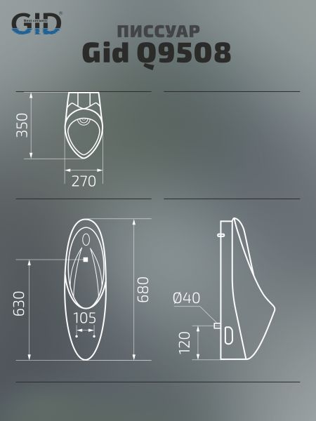 Подвесной сенсорный писсуар Gid Q9508 91113 белый 27x35x68