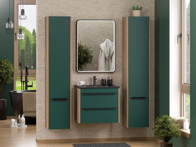 Подвесной шкаф - пенал Brevita Greenwood GRE-05035-08П правый 35см зелёный/дуб Галифакс олово