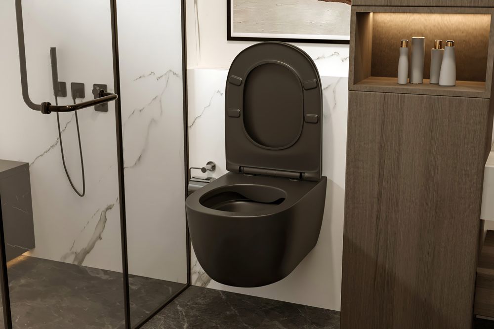 Подвесной унитаз ABBER Bequem AC1104MB безободковый чёрный матовый купить