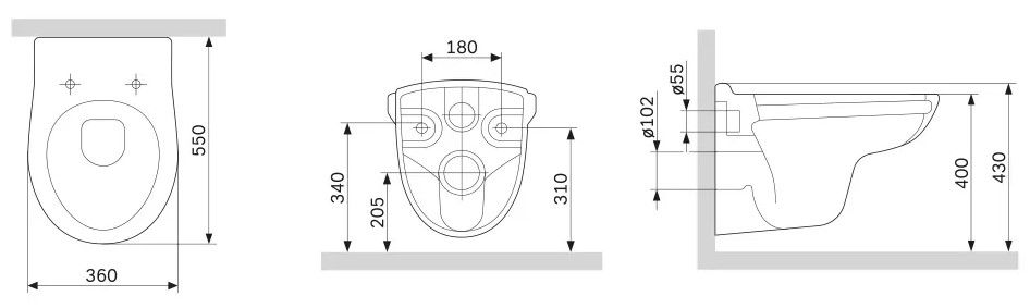 • Укороченный унитаз: