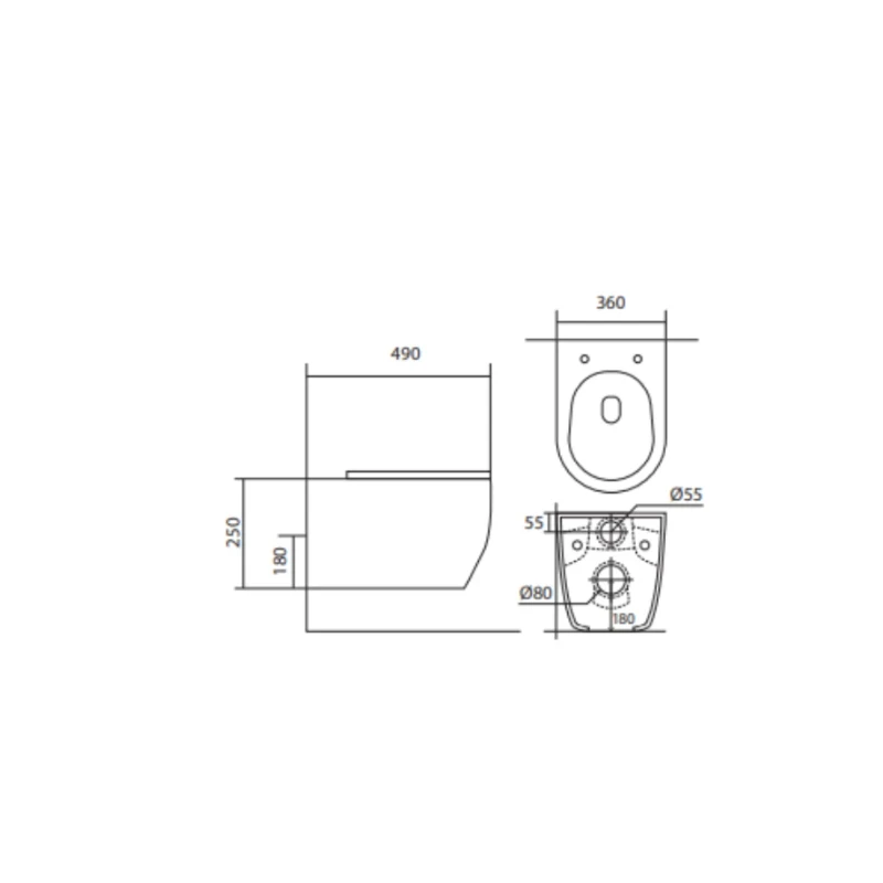 Ширина чаши унитаза 360 мм