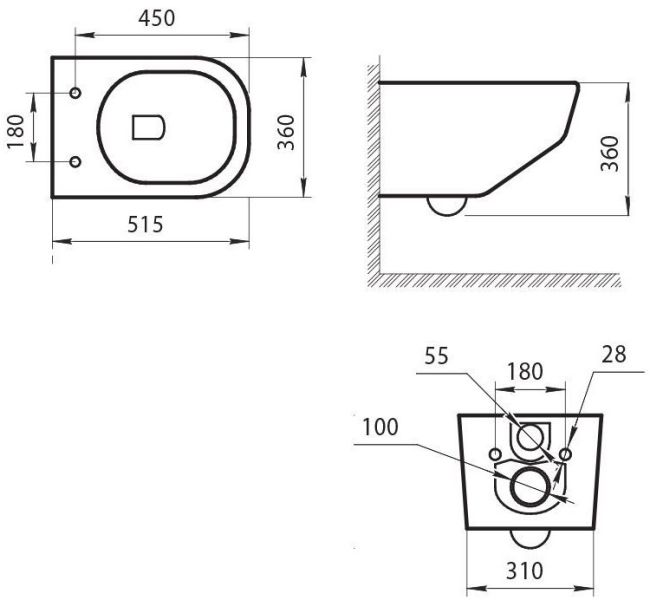 • Прилегание унитаза к стене: