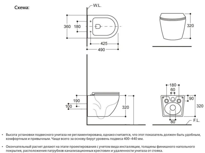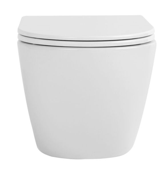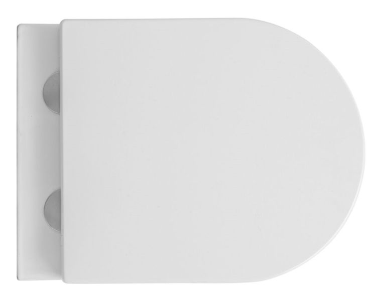Подвесной безободковый унитаз с системой скрытого монтажа, крышкой-сидением из дюропласта с функцией soft-close и quick release.