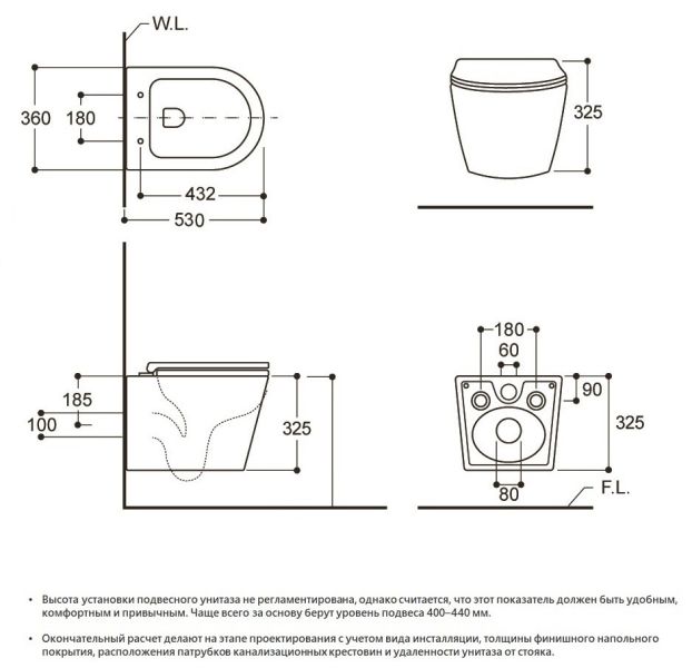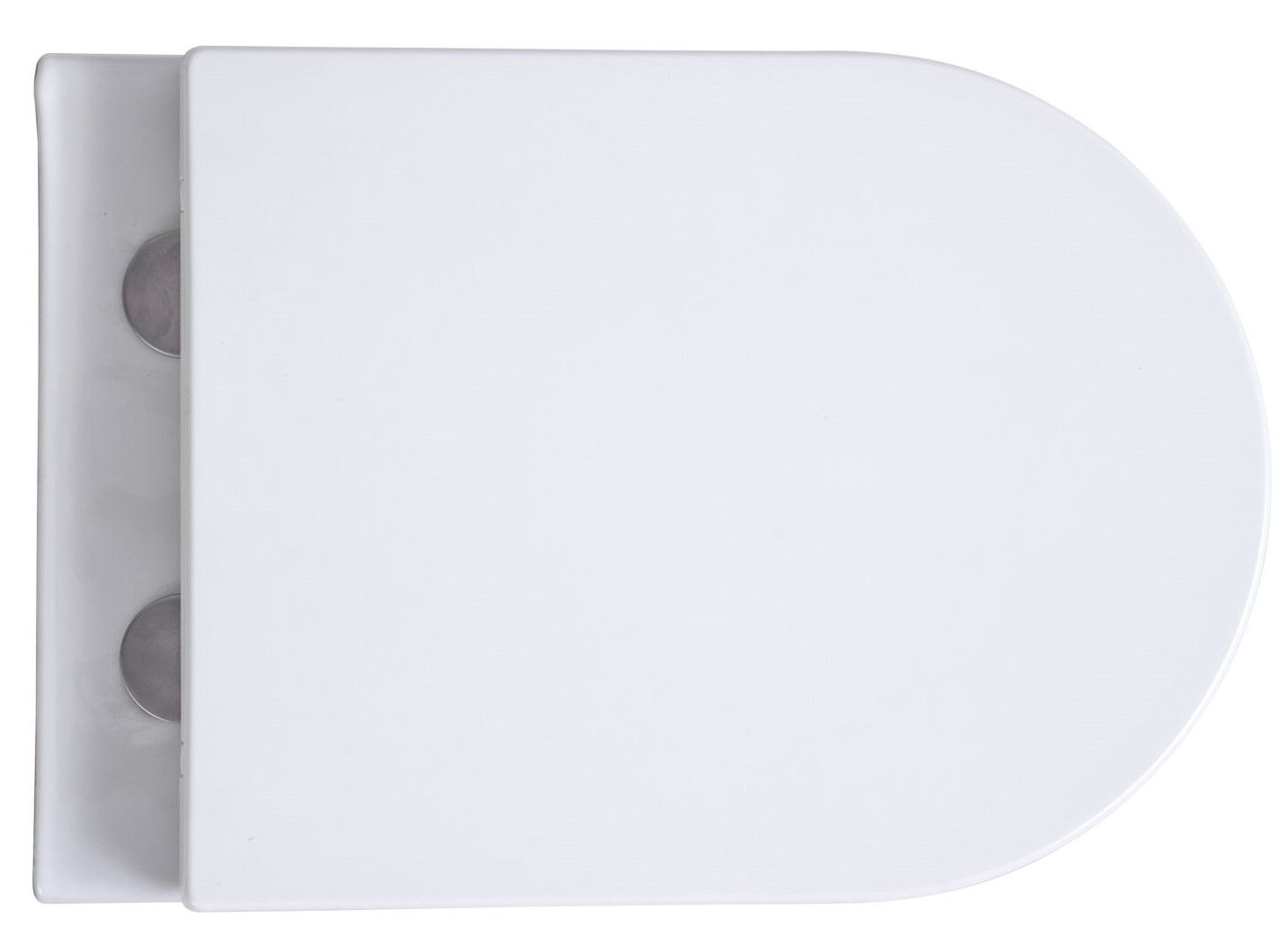 Подвесной безободковый унитаз с системой скрытого монтажа, крышкой-сидением из дюропласта с функцией soft-close и quick release.