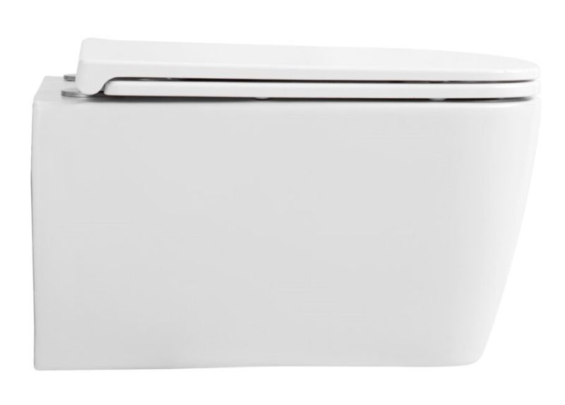 Подвесной безободковый унитаз с системой скрытого монтажа, крышкой-сидением из дюропласта с функцией soft-close и quick release.