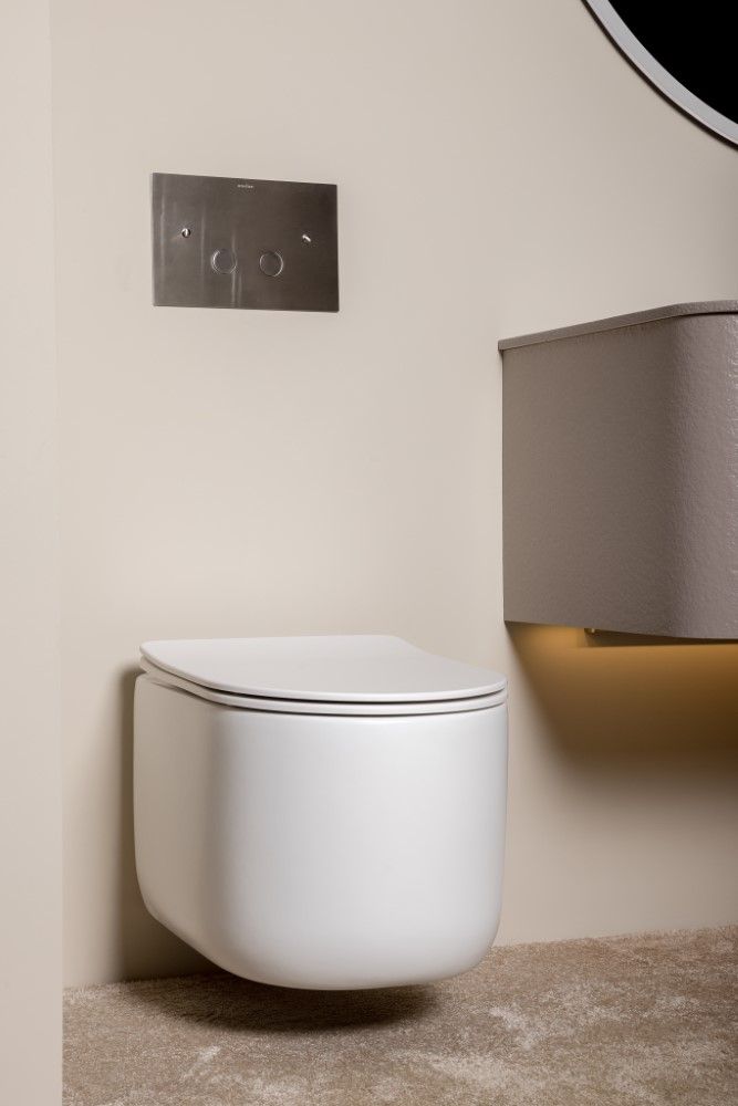 Новый унитаз Boheme FLOW. Обтекаемая форма чаши дополнена оригинальной крышкой с функцией плавного закрытия. Бесшумный и эффективный смыв торнадо.