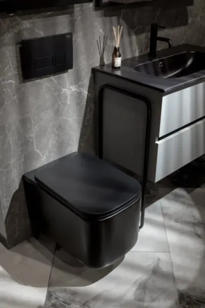 Подвесной унитаз Boheme Mane 970-SET-B безободковый чёрный матовый купить