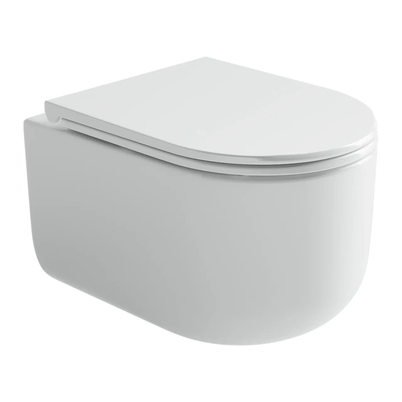 Подвесной унитаз Ulma Rimless, глубокий смыв, с крепежом для полностью скрытого монтажа, ультра тонким с сидением и крышкой с функцией плавного закрытия