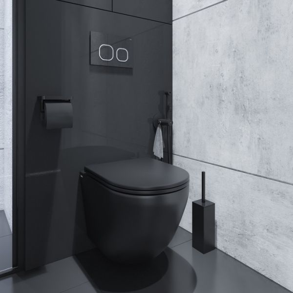 Компактный подвесной унитаз Blanco в черном цвете выделяется идеально спроектированной геометрией безободковой чаши. Вместе с плоским сиденьем это достоинство обеспечивает максимальный комфорт и гигиеничность от эксплуатации продукта. К унитазу Blanco подходит любая инсталляционная система. Оптимальный выбор – инсталляции IDDIS® (арт. NEO0000I32 и арт. PRO0000i32). Сантехника черного цвета – модный тренд, способный сделать интерьер туалетной или ванной комнаты невероятно стильным и современным.