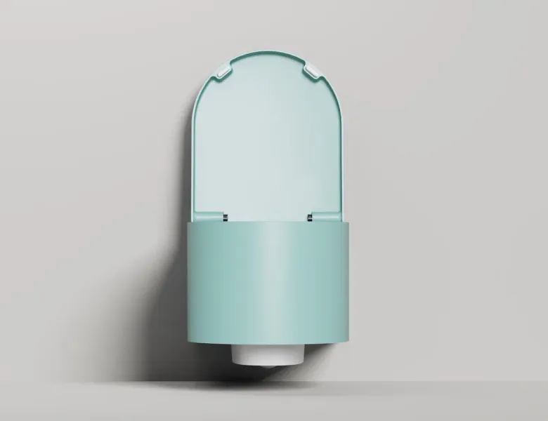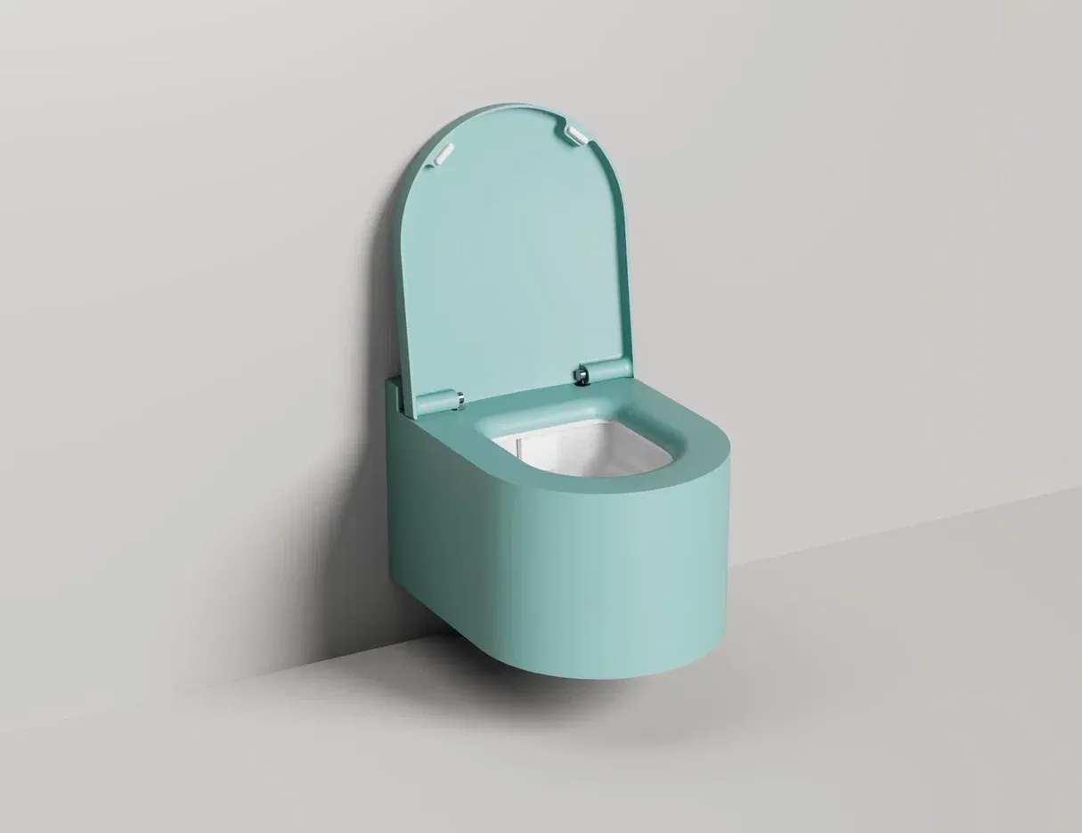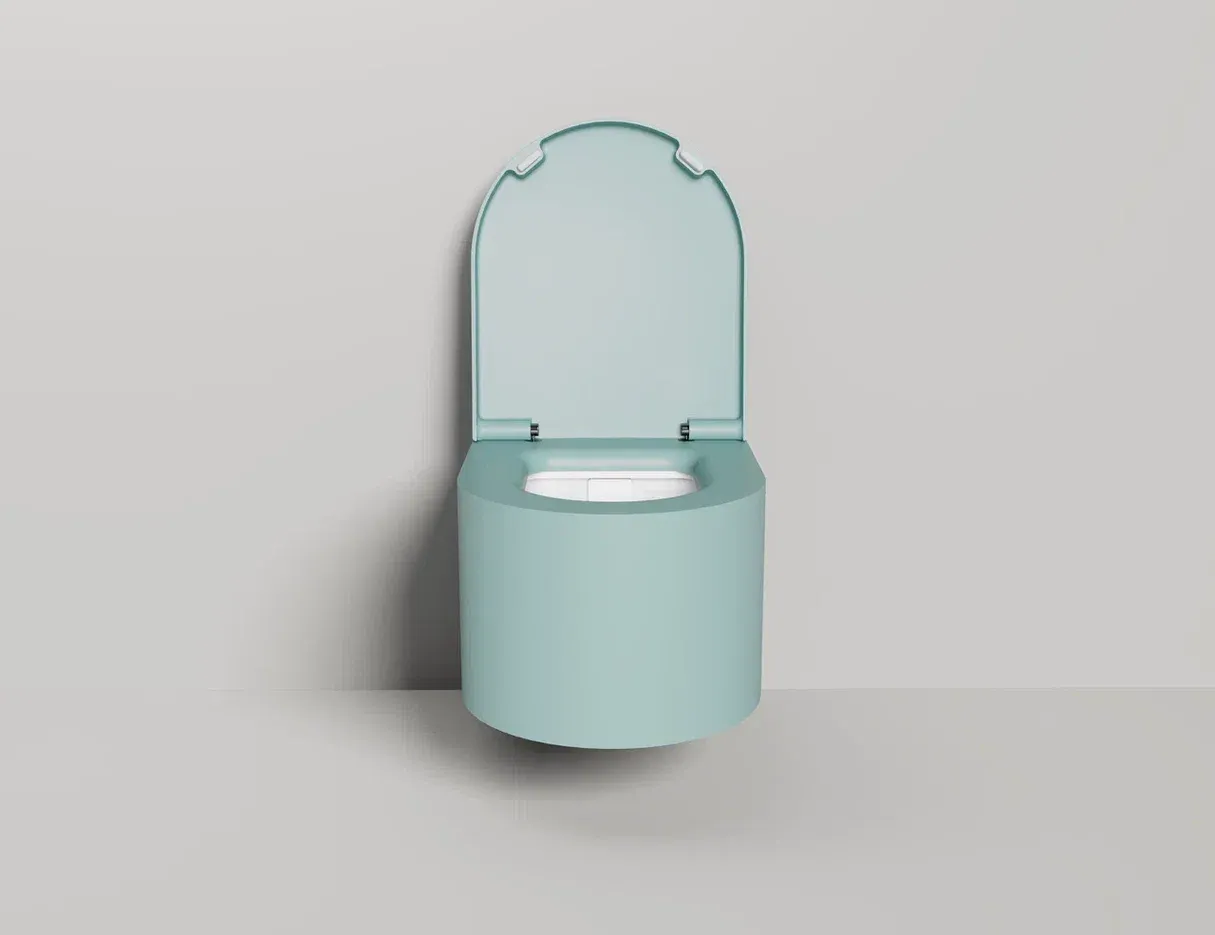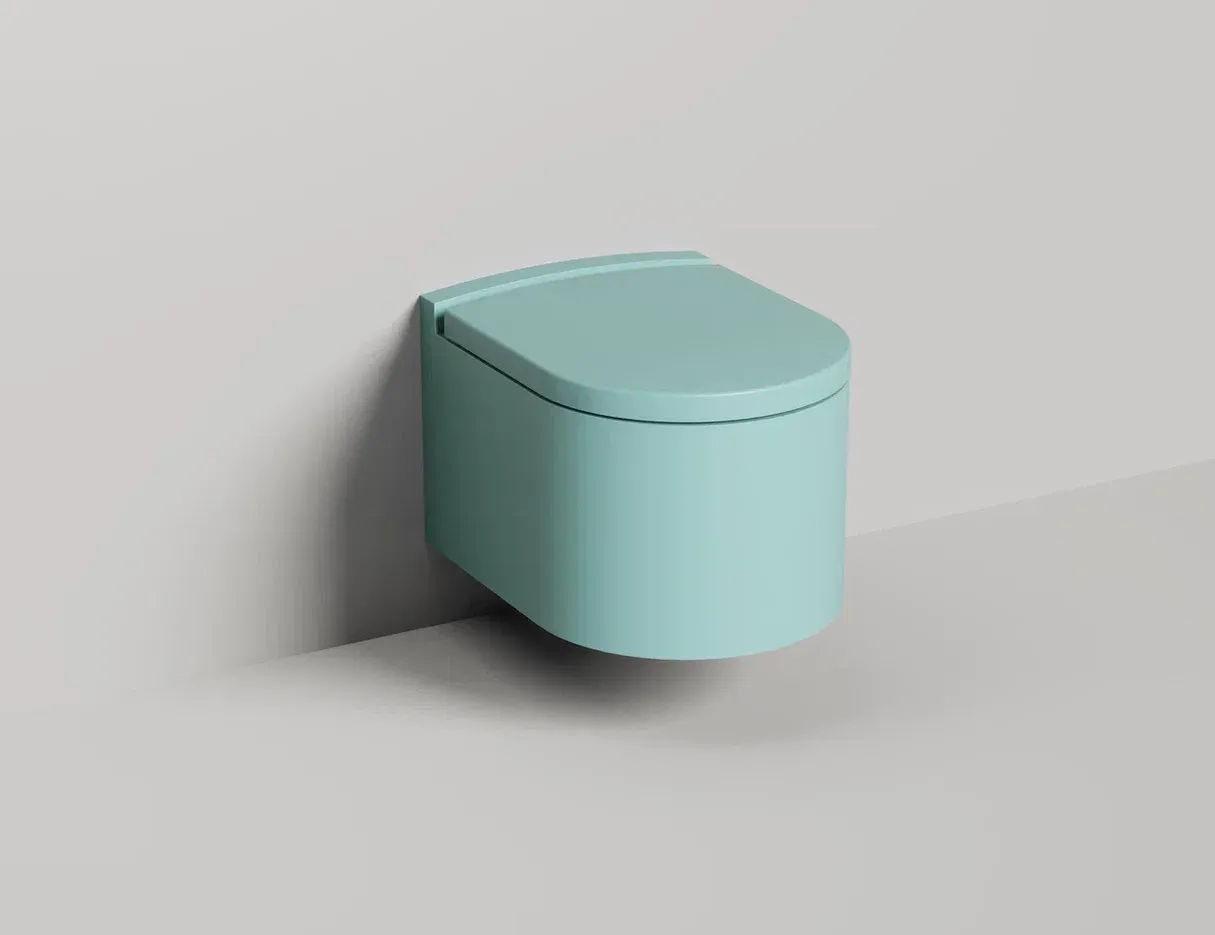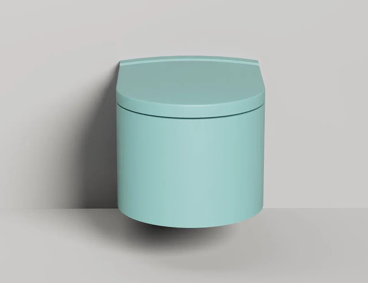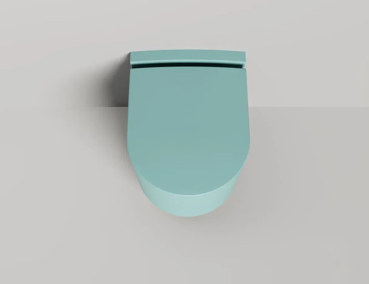 Унитаз GEMELLI — это комбинация безободковой керамической основы белого цвета (VitrA) и внешнего корпуса, изготавливаемого из материала S-Stone, который может быть окрашен по палитре RAL Classic.