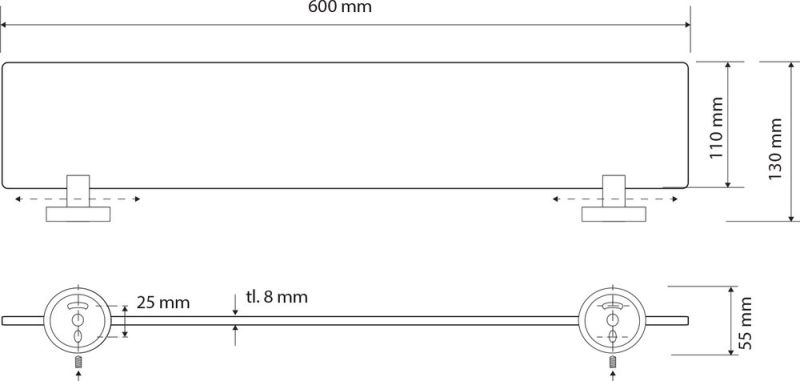 Важным дополнением настенного зеркала в ванной комнате станет полка Bemeta Dark 104102040. Размер позволяет разместить зубную пасту, щетки, мыло и другие средства ухода и гигиены. Изюминкой модели является сочетание матового закаленного стекла и черных латунных розеток. Выбранные материалы не боятся воды, нагрузок и перепадов температур.