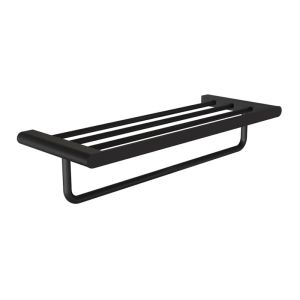 Стильная полка для полотенец в матовом чёрном исполнении подчеркнёт характер и современность интерьера. Прочная нержавеющая сталь и матовая текстура придают изделию премиальный вид и защищают от царапин.