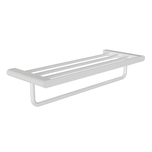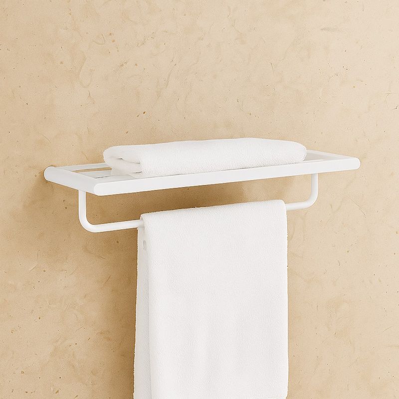 Полка для полотенец в матовом белом цвете подарит пространству свежесть и чистоту. Лёгкая по виду, но прочная по сути, она прекрасно дополнит светлый современный интерьер.