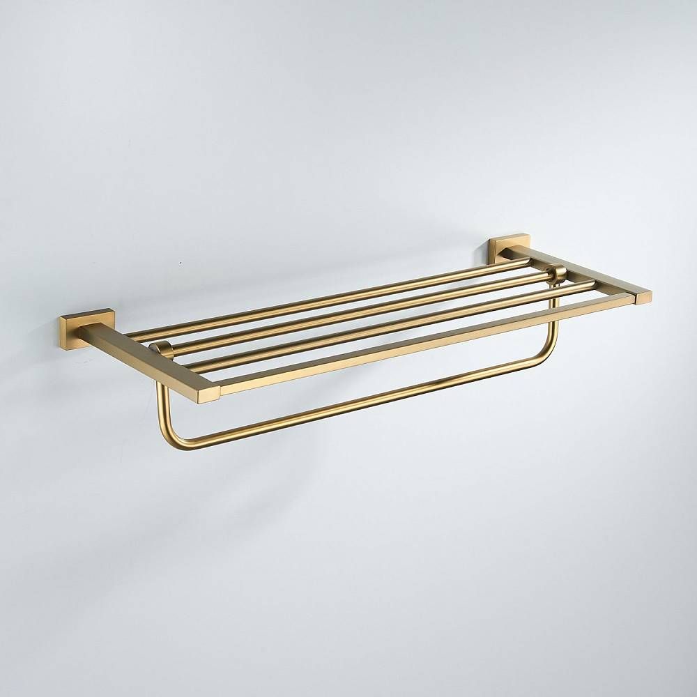 Полка для полотенец Shevanik SG5608G, золотой сатин.Метод крепления: шурупы.Материал: латунь.