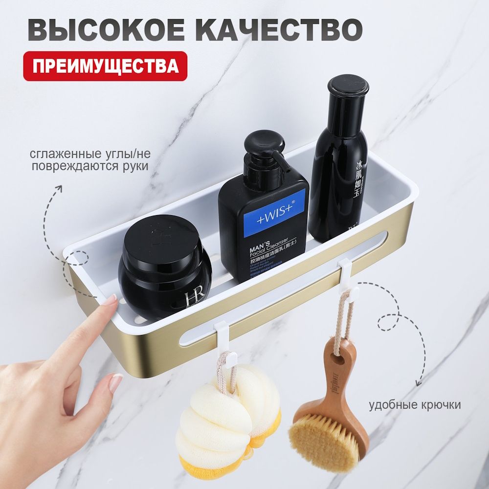 Полка для ванной комнаты Raglo R340.02.03, золотой сатин. Размер: 30x13x6,5 см. Тип крепления: н... Подробнее