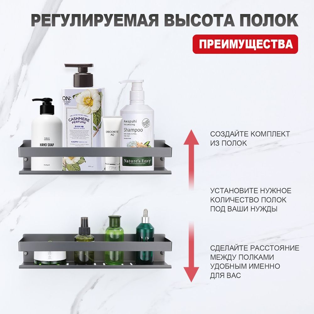 Полка для ванной комнаты Raglo R340.03.09, графит. Размер: 41x11,5x9 см. Тип крепления: на болта... Подробнее