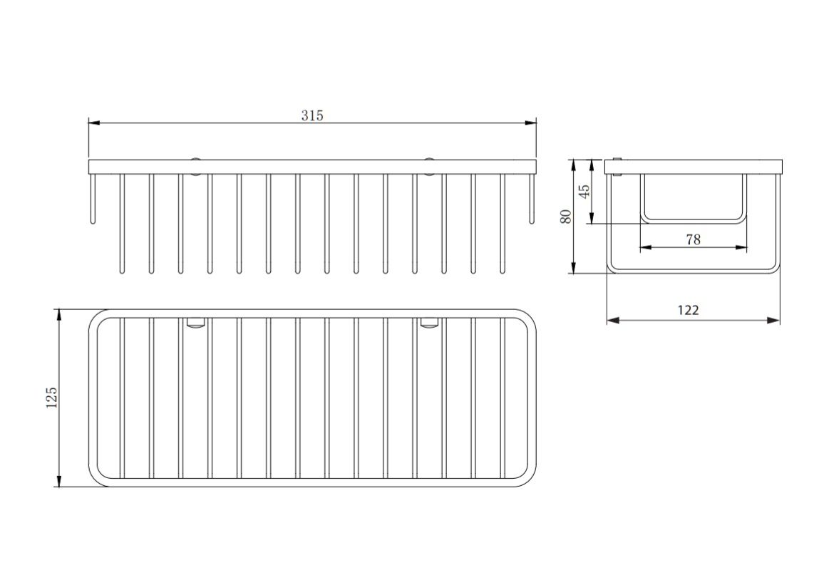 • ширина: 31,5 см, высота: 8 см, расстояние от стены: 12,5 см