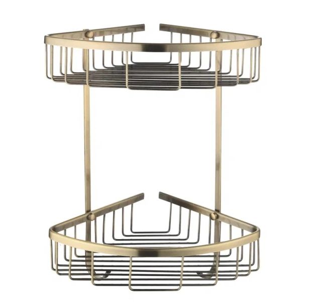 Полка металлическая угловая двухъярусная Rose RW12Q, бронза.