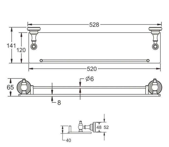 Полка стеклянная Rose RG1119Q 53см бронза купить
